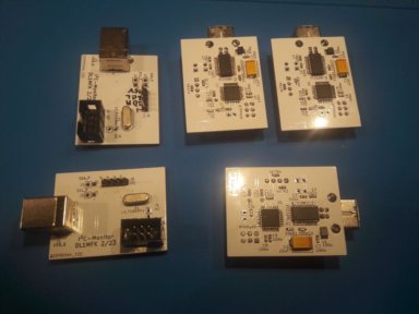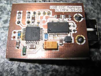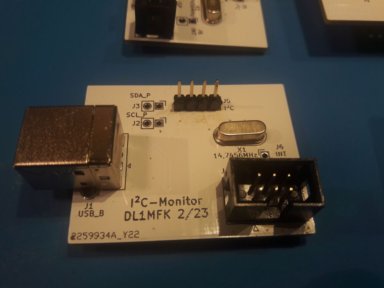 Es gab Probleme beim DB0QI mit der Software die den I²C-Bus bedient. Die einzige Möglichkeit diese Probleme einzugrenzen war, einen I²C-Monitor einzusetzen. Im Mikrocontroller-Forum bin ich dann fündig geworden. Sven Hauke heißt der gute Mann, der die passende Idee mit Software zur Verfügung stellte. Ursprünglich war das ein Monitor für die RS232-Schnittstelle, aber das ließ sich dann leicht auf USB umbauen. Das Ergebnis sieht so aus: