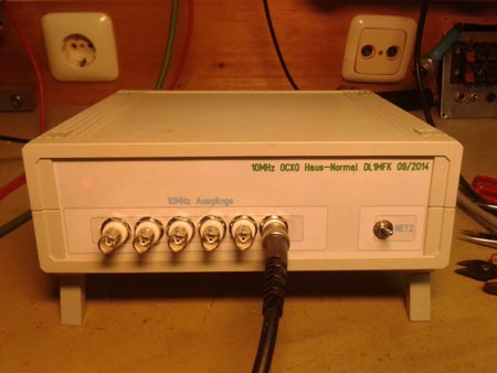 Ferdi hat mich genötigt ein Labor-Frequenz-Normal zu zimmern. In der Bastelkiste liegt noch ein Rubidium-Normal, das sollte ich dann noch wenn's genauer sein muß auch mal in eine Schachtel packen ....