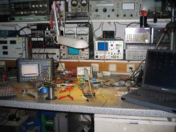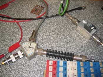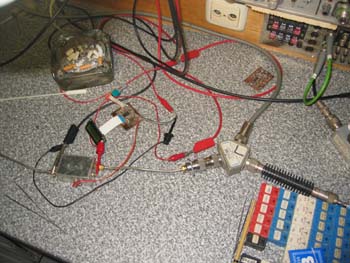 Hier der Meßaufbau mit Leistungsteiler zum Specki und Meßempfänger und Preemphase: