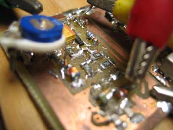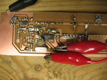 Aber da ich im Moment nur SMD-Ls mit minimal 10nH hab war mir erst mal nach einer Leiterbahn als Spule (die breite Leiterbahn ganz oben im Bild):