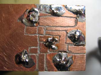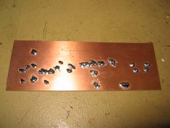 Inzwischen sieht die erste Prototypenplatte ziemlich verbastelt aus: