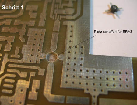 mit ca. 1,5cm Länge. Auch diesen Oszillator hab ich mit 2 MMICs auf 20mW