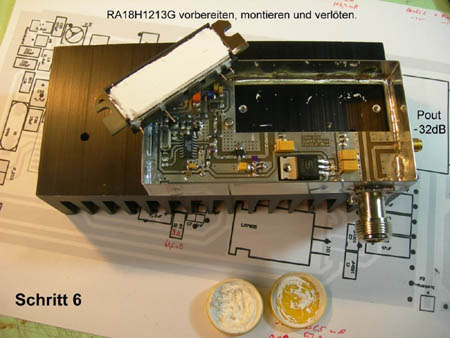 Das 23cm Modul RA18H1213 macht 30W auf 23cm und will gut gekühlt werden. In der Zwischenzeit sind 2 ATV-TX-Versionen entstanden, die in einem Gehäuse 108mm x 53mm VCO und PA enthalten: