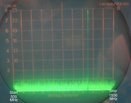 Im Betrieb sah das Spektrum schon ganz ordentlich aus, die erste Nadel bei 890 MHz mit -3dBm und die Oberwellen bei jeweils 2 dB weniger ... die Variation betrug +- 20MHz. für den ersten Versuch garnicht sooo faaad.