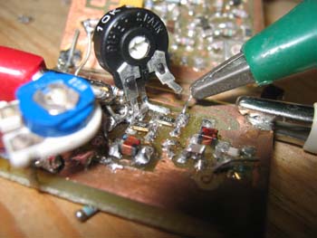 Die beiden Potis haben die Aufgabe die Güte der 8,2µH Spule (blaues Poti) und die des 1680pF Koppel-C's (schwarzes Poti) zu ändern.