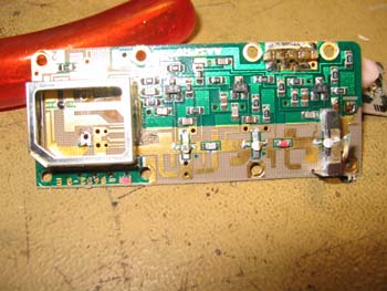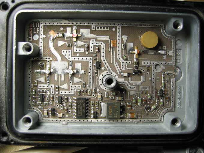 Diese LNCs gabs dort für ein paar Euros zu erstehen und eigentlich sehr bequem zum Umbauen. Das Einzige was einem die Arbeit sehr erleichtert, ist ein Resonator (auch Pille genannt), der sehr nahe an 9 GHz schwingt. Ersatzweise tuts auch eine zweite 10 GHz Pille die auf ca. 2/3 ihrer ursprünglichen Höhe abgeschliffen ist, und mit einem kleinen Tropfen Sekundenkleber oder Uhu auf den originalen aufgeklebt wird. Das Abschleifen geht mittels eines langsam rotierenden Schleifsteins der für Messer und Scheren gedacht ist. Mit allen anderen Mitteln hab ich Tage gebraucht dieses Material klein zu bekommen.