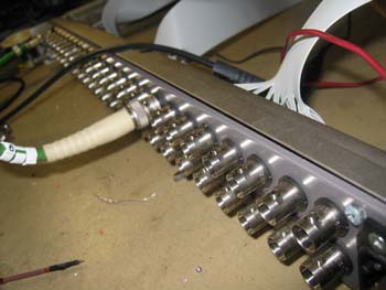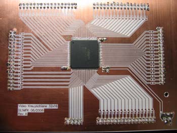 ... hab ich mal wieder eine Kreuzschiene (MAX4357) aufgebaut und festgestellt, daß ich da wohl noch was dran machen muß. Um die Chips zu betreiben verwende ich die symmetrische Spannungsversorgung irgendwo zwischen +-3 und +-5V. Das macht insofern Sinn, daß nur bei der symmetrischen Spannungsversorgung die Verstärkung des Signalweges so einzustellen, daß dann am Ausgang nach den 75Ω Widerständen auch wieder 1Vss anliegt. Um aber die ICs dazu zubewegen daß sie ein Signal abgeben ist es notwendig ENTWEDER die 100nF Cs an den Eingängen mit einem Lötbatzen kurzzuschliessen, oder 120kΩ auf der IC-Seite gegen Masse einzubauen. Erst dann stimmt das Gleichspannungsverhältnis von Eingang zu Ausgang, und ein Signal wird auch geschaltet. Hätte ich nur meine eigene Homepage gelesen wär mir das vorher aufgefallen :-)))
