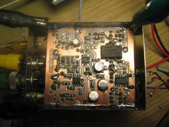Die ersten Fehler haben sich mittlerweile bemerkbar gemacht, zum einen ist das Layout des Videofilters zum anderen das Layout Tonplatte spiegelverkehrt verwendet ... hmbfff das Filter ließ sich ja noch auf der Unterseite verlöten, aber die ICs auf der Tonplatte sind auf dem Kopf eingelötet .... mal sehen was sich denn noch so alles findet :-)