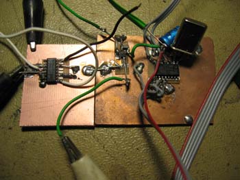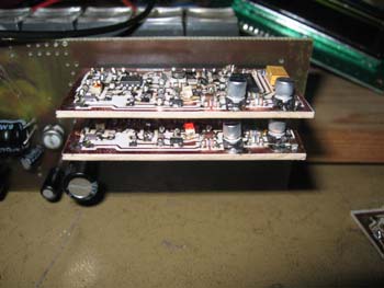 Nach vielem Hin und Her und einigen Versuchen ist wieder eine neue Generation Platinen im Entstehen. Das Problem ist immer noch die intermodulationsfreie Zusammenführung der mehr als 2 Tonträger. Inzwischen ist nun ein weiterer OP in die Schaltung eingeflossen. Die Ärgernisse mit denen ich mich hierbei befasse sind nicht die üblichen Intermodulationsprodukte, also nicht die Spektrallinien links und rechts 2er Tonträger die im Abstand der Differenz auftreten, sondern die Spektrallinie die die Differenz der beiden Tonträger ergibt, also bei 5,5MHz TT1 und 6,5MHz TT2 ergibt eine Spektrallinie bei 1 MHz, und diese macht natürlich Ärger im sichtbaren Bereich, sprich im Video. Deswegen entstand nun eine extra Summationstufe mit eigenem OP, nachgeschaltet ein Tiefpaßfilter, und dann erst die Summation mit dem gefilterten Videosignal. Die aktuelle und noch nicht getestete Bastelanleitung findet ihr hier. Die neue Systemplatte ist gerade mal gebohrt ... mal sehen wann die ersten Tests damit erfolgen können ... die Zuversicht steigt, nur die Zeit zum Spielen damit ist im Augenblick etwas mager ...