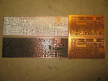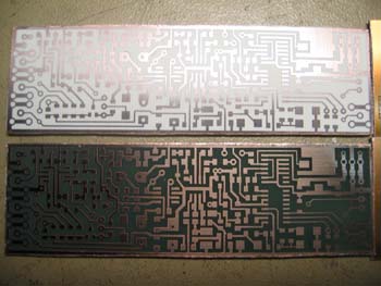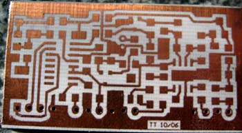Was die Tonträgerplatte angeht bin ich auch recht zufrieden. Der Schleifenfilter ist soweit ganz gut angepasst und in dieser Bastelunterlage sind die Werte und zusätzlichen geänderten Komponenten nachgetragen. Hier schon mal die ganz frisch aus dem Ätzbad genommene neue Tonträger-Platine: