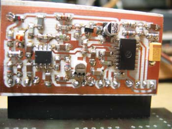 für meinen neuen DB0HOB-Steuersender (1440MHz) habe ich die Basisbandaufbereitung etwas zurück- gestutzt, um nur eine kleine Schachtel zu verwenden. Die Tonträgerplatine ist gleich geblieben, nur die Grundplatine ist neu und kleiner. Festzustellen war dabei daß der Ausgangs-OP doch bei niedrigen Verstärkungen zum Schwingen neigt ...