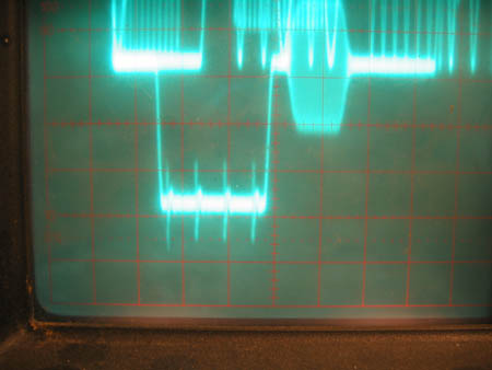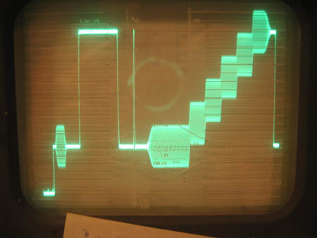 Was schad is, ist, daß auf dem Sync-Boden 4 kleine Überschwinger zu sehen sind, und die leider mit Verblockungen in der Testschaltung nicht zu erschlagen sind.