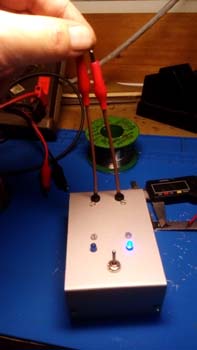 Prüfling zwischen Daumen und Zeigefinger nehme. Eine leuchtende LED zeigt dann