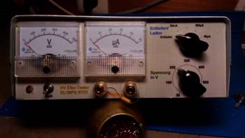 Eine Bemerkung noch zu diesem Gerätle. Hier kommt HOCHSPANNUNG raus ... darum hat die Schalterstellung "Entladen" eine nicht unerhebliche Bedeutung.